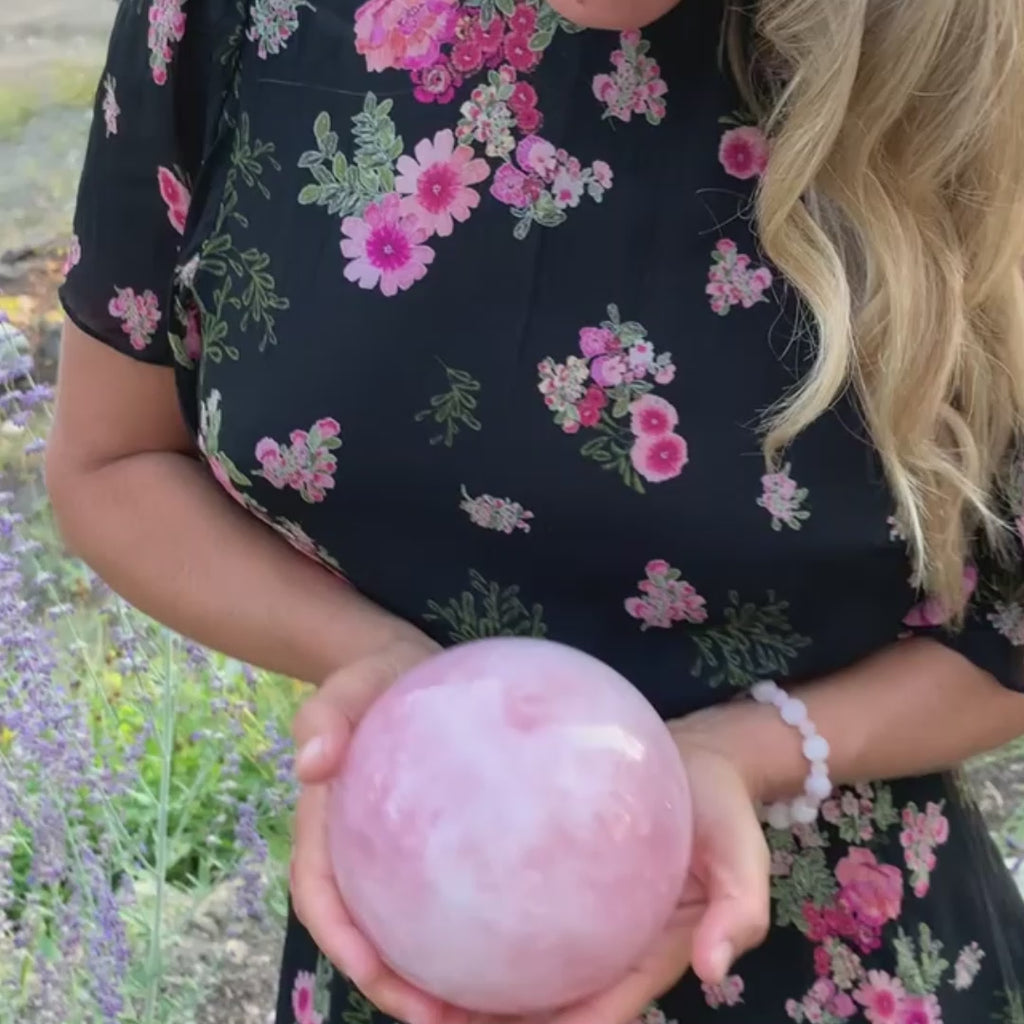 This stunning rose quartz sphere weighs approximately 5-7 pounds.(2.5 to 3 kilograms)