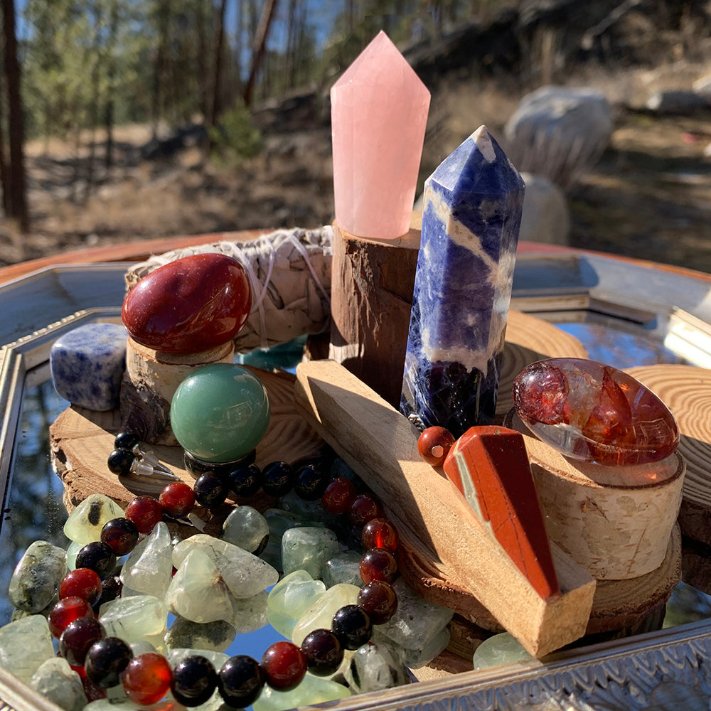 Our surprise boxes also include such things treasures as sage & palo santo incense, stone mala bread bracelets, perhaps even the occasional crystal pendant.